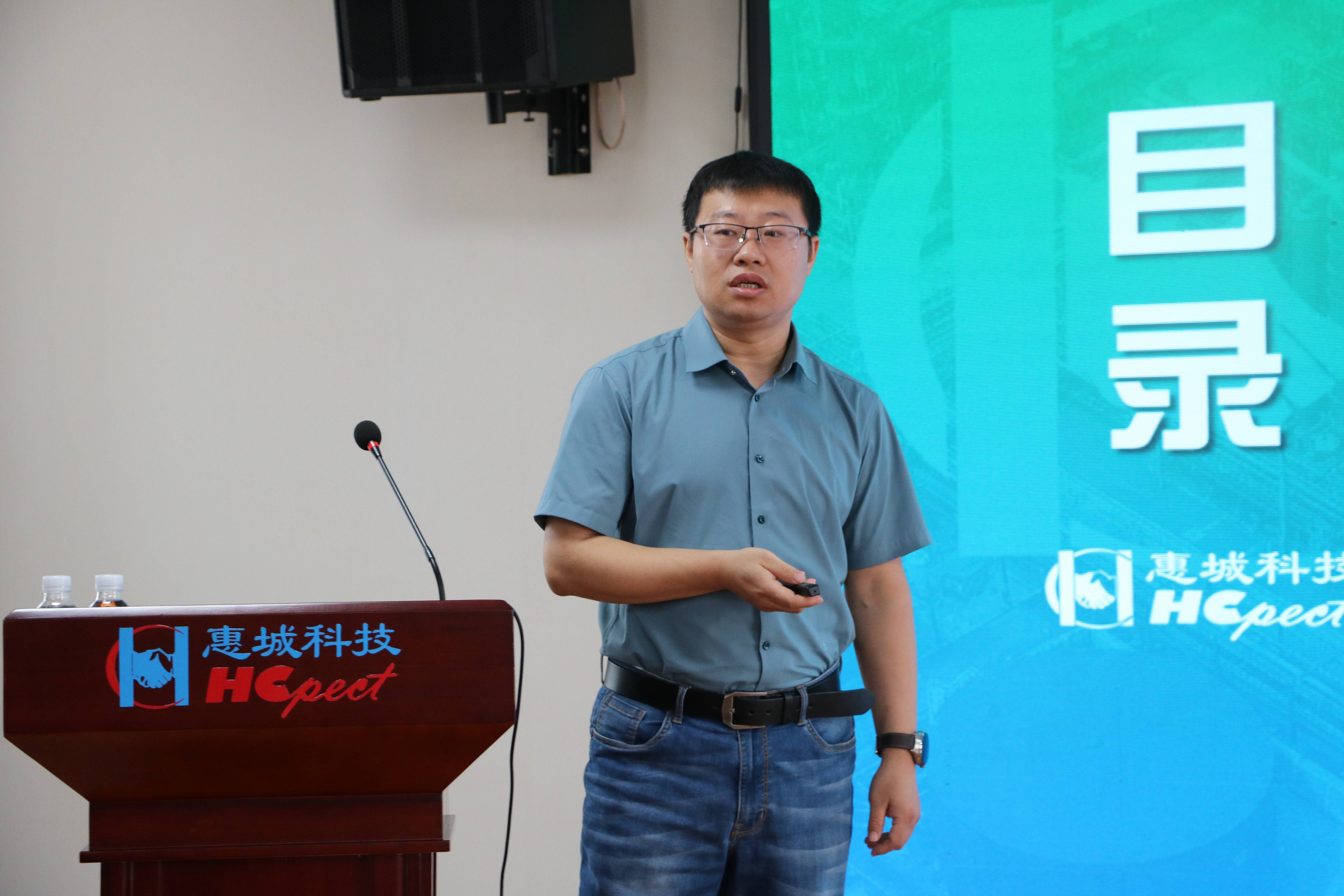 惠城環(huán)保總經(jīng)理助理李世鵬為新員工培訓(xùn)“集團發(fā)展歷程、企業(yè)文化、職場新人角色轉(zhuǎn)換等”