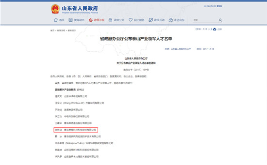 賀我公司董事長張新功當選為“泰山產業領軍人才”