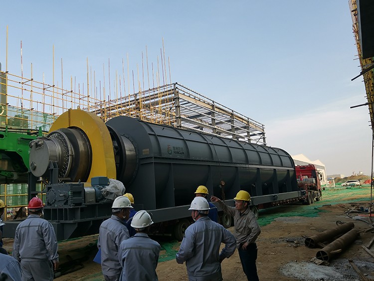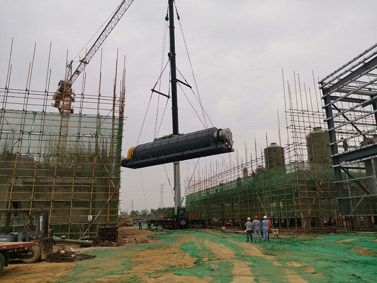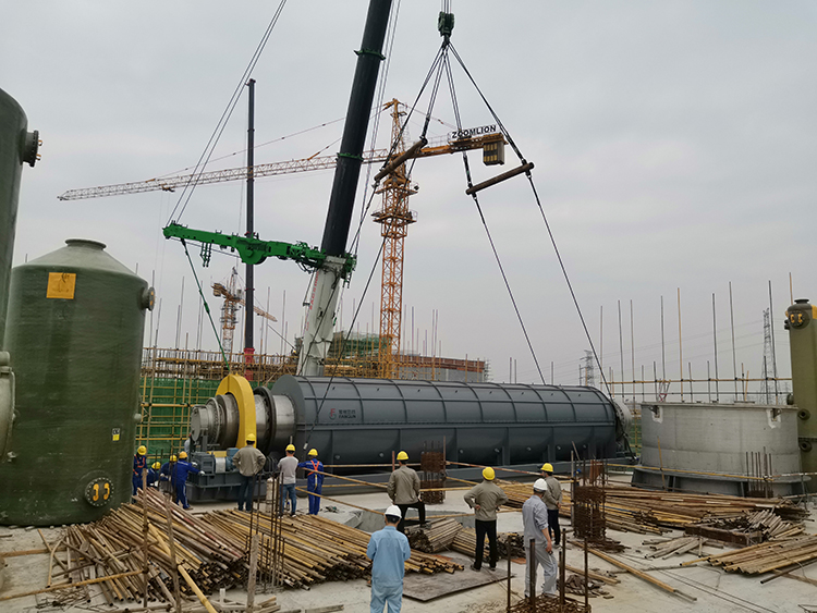 焙燒爐進行吊裝準備