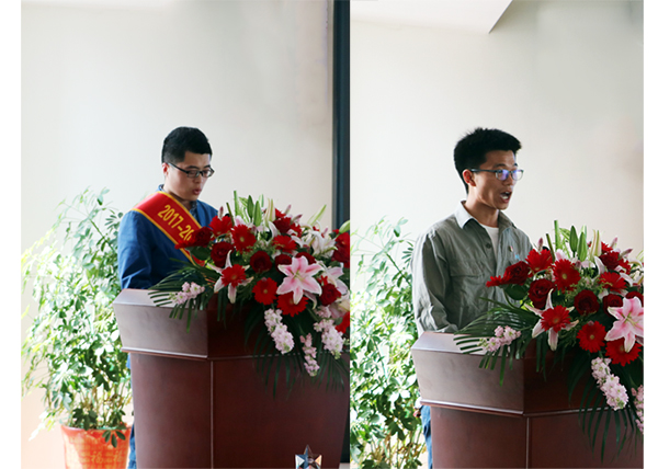 勞動模范代表汲傳奇和優秀青年代表單國慶上臺發言