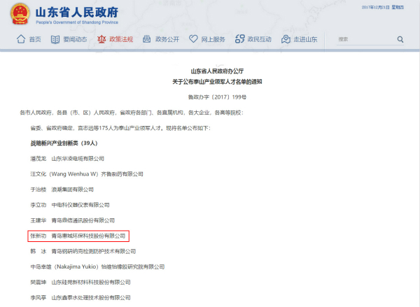 近日,山東省政府辦公廳公布了2017年泰山產業領軍人才名單(魯政辦字[2017]199號)。泰山產業領軍人才工程是一項納入山東省委組織部管理的省級人才工程,是產業界的“泰山學者”。該工程計劃從2015年到2020年,以全省各類企業、園區、產業基地為依托,面向海內外引進培養1000名左右“高精尖缺”產業領軍人才,聚集形成1000個左右產業人才團隊,努力在人才引領產業轉型升級方面做到全國領先的水平。張新功當選為山東省戰略新興產業創新類“泰山產業領軍人才”。? ? ? ??