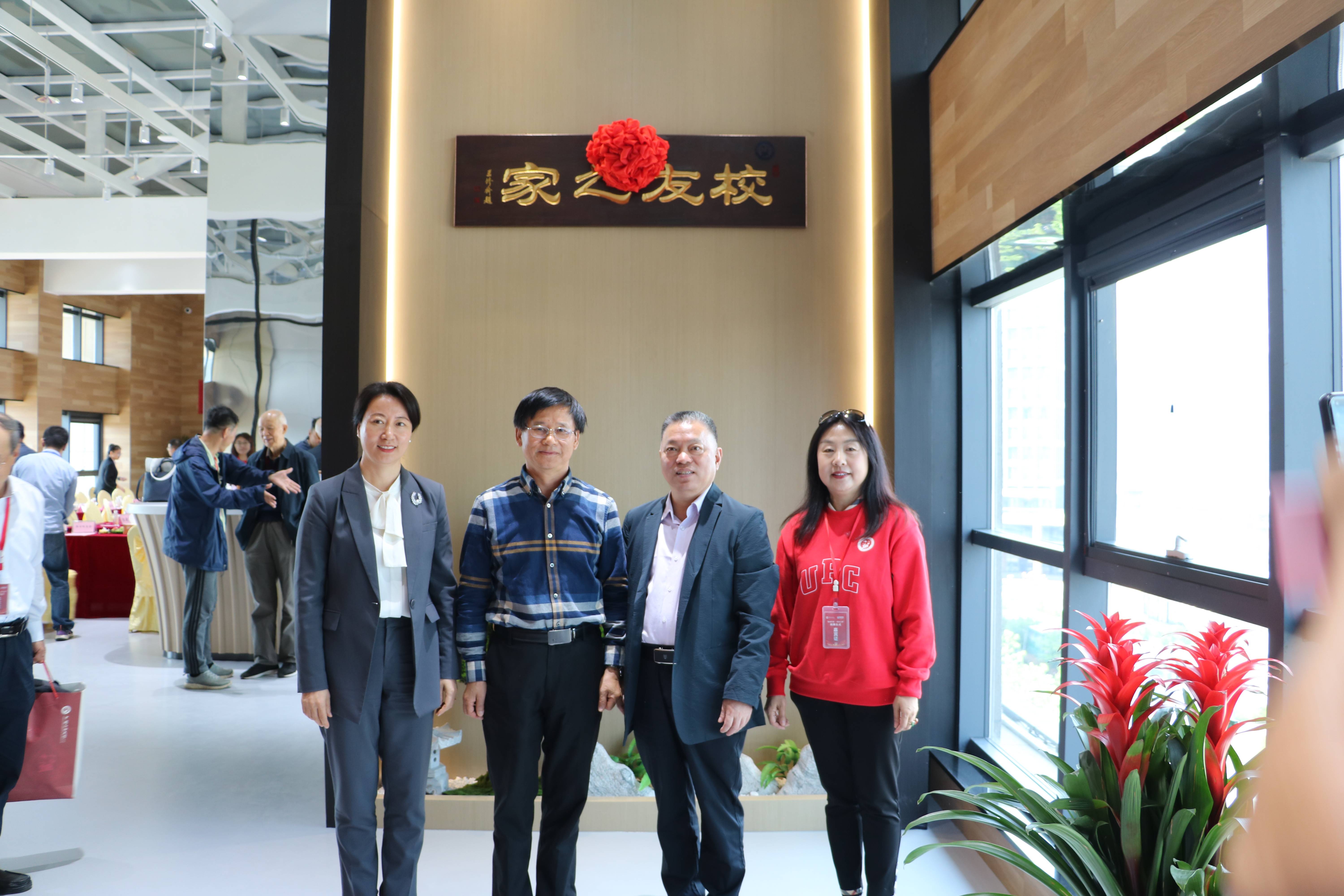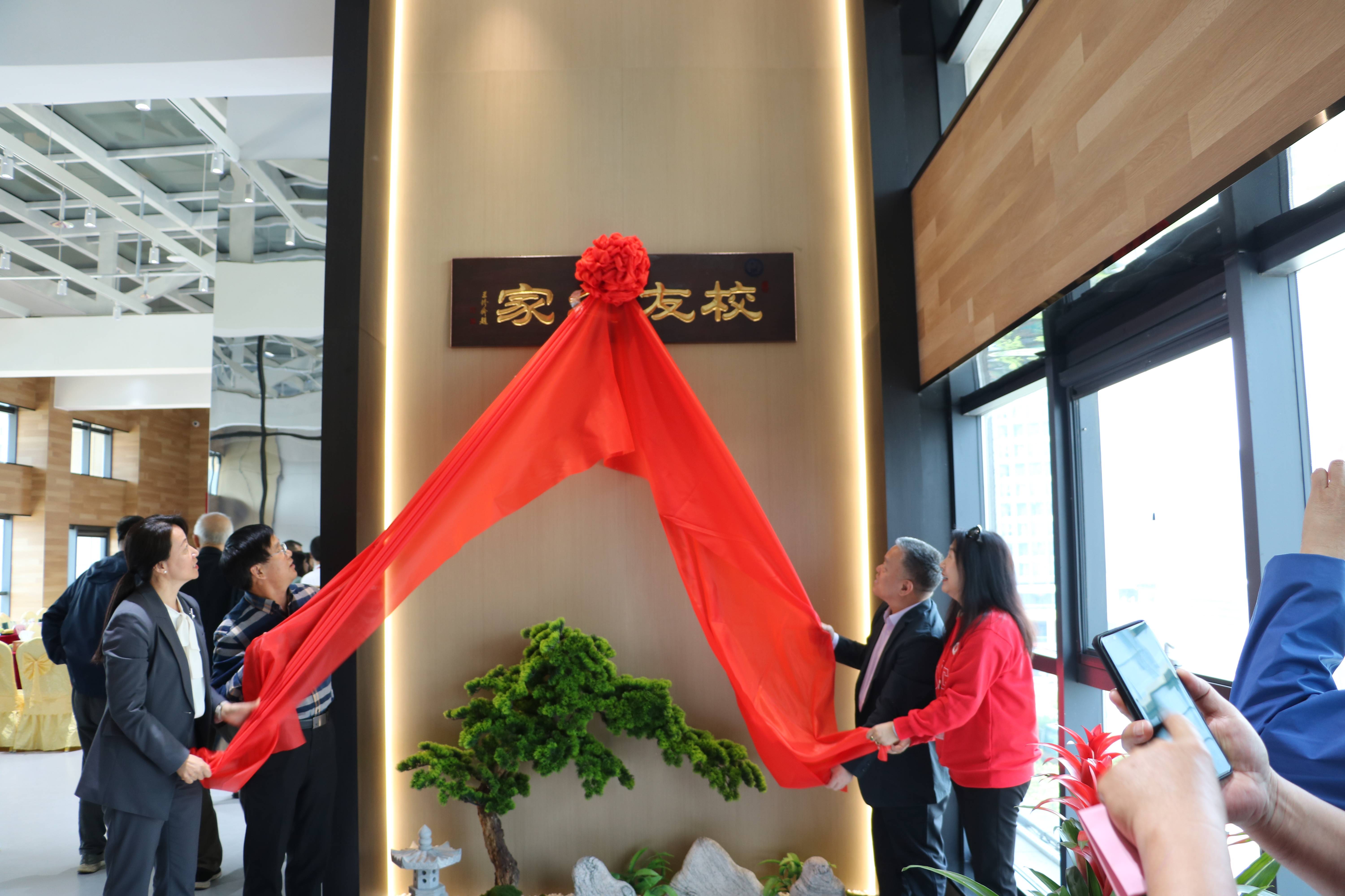 交流會后,校友總會會長查明、校長助理兼校友總會秘書長王效美、惠城環保創始人張新功、青島校友會副會長兼秘書長唐作慧一道為“校友之家”揭牌。